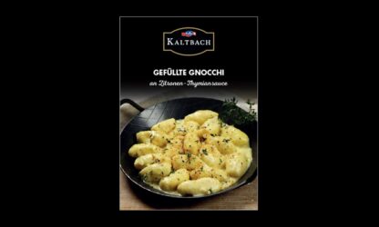 Mit diesen hochwertigen Rezeptkarten zur Herausgabe an Ihrer Käsetheke erhält Ihre Kundschaft eine einfache Schritt-für-Schritt-Anleitung für die Zubereitung gefüllter Gnocchi mit KALTBACH Der Cremig-Würzige.
